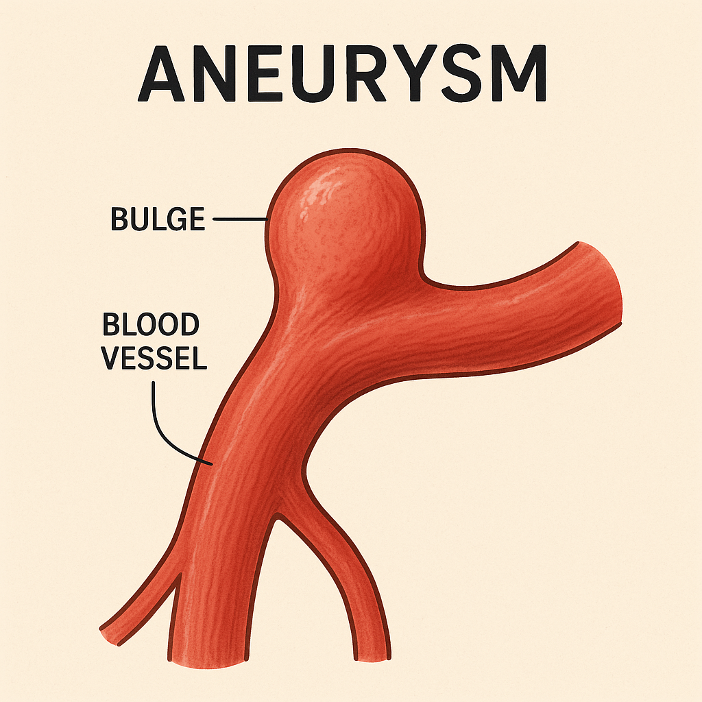 An aneurysm is a weakened, fusiform (bulge on all sides).