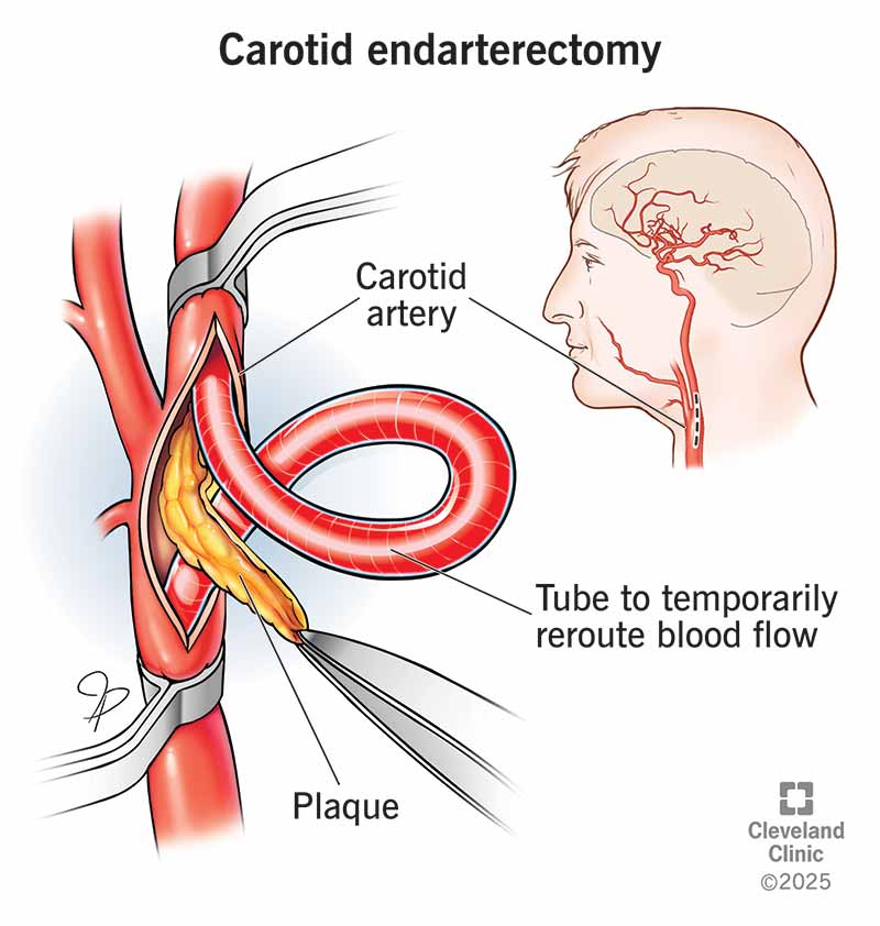 • This surgery aims to reduce the risk of stroke by improving blood flow to the brain.